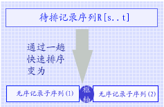 | 10.3.2 快速排序 起泡排序是通过一趟"起泡"选定关键字最大的记录,所有剩余关键字均小于它的记录继续进行排序,快速排序则是通过一趟排序选定一个关键字介于"中间"的记录,从而使剩余记录可以分成两个子序列分别继续排序,通常称该记录为"枢轴"。如右图所示,假设一趟快速排序之后枢轴记录的位置为 i,则得到的无序记录子序列(1) R[s..i-1] 中记录的关键字均小于枢轴记录的关键字,反之,得到的无序记录子序列(2)R[i+1..t] 中记录的关键字均大于枢轴记录的关键字,由此这两个子序列可分别独立进行快速排序。 经第1趟快速排序之后为 ( 23, 49, 14, 36) 52 (75, 58, 97, 80, 61 ) 经第2趟快速排序之后为 ( 14) 23 (49, 36) 52 (61, 58) 75 (80, 97 ) 经第3趟快速排序之后为 ( 14, 23, 36, 49, 52, 58, 61, 75, 80, 97 ) 快速排序的算法如下: void QSort (RcdType R[], int s, int t ) { // 对记录序列 R[s..t] 进行快速排序 if (s < t) { // 长度大于1 pivotloc = Partition(R, s, t); // 对 R[s..t] 进行一趟快排,并返回枢轴位置 QSort(R, s, pivotloc-1); // 对低子序列递归进行排序 QSort(R, pivotloc+1, t); // 对高子序列递归进行排序 } // if } // Qsort void QuickSort( SqList & L) { // 对顺序表 L 进行快速排序 QSort(L.r, 1, L.length); } // QuickSort |