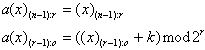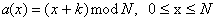 k为常数,指移过的位置值,也可以将整个输入数组分成若干个子数组,在子数组内进行循环移数置换,这种段内循环移数的表达式可写成为两个式子如下: |