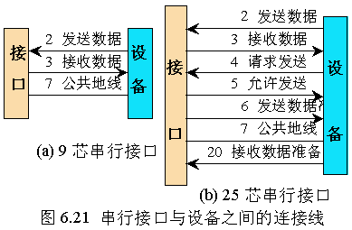 图 6.21 串行接口与设备之间的连接线 |