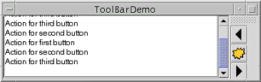 工具栏在左上角 工具栏在右侧 JtoolBar是用于显示常用工具控件的容器。用户可以拖拽出一个独立的可显示工具控件的窗口。 常用方法有: JToolBar(String name) //构造方法 getComponentIndex(Component c) //返回一个组件的序号 getComponentAtIndex(int i) //得到一个指定序号的组件