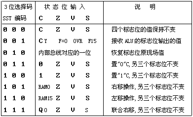 在使用运算器时, 就必须在恰当的时刻给出选择某一种操作方式的选择信号, 这用3位选择码SST就可以实现, 其具体规定如表2.16所示。 |