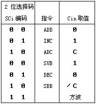 以使C=1表示加减运算有进位或有借位, 为此又必须在实现带借位减运算指令SBB时, 使用C的非, 而不是C。这里就有7种给出最低位进位输入信号Cin的需求,可以用两位选择码SCi与有关指令的操作码共同加以区分,具体规定如表2.17所示。