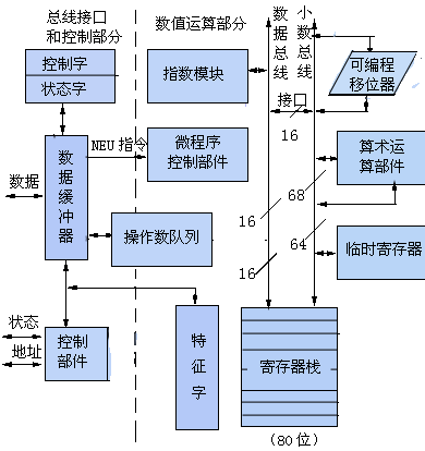 .高性能的80位字长的内部结构,有8个80位字长的以堆栈方式管理的寄存器组;