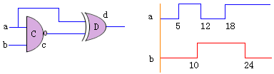 二、 问答题 第1题 为什么要对设计进行模拟验证?什么时候需要模拟验证? 第2题 实现模拟验证的基本方法是什么? 第3题 逻辑电路如何描述的?如何描述元件及其连接关系?模拟程序中的电路模型与中间表示格式有何区别? 第4题 事件驱动模拟算法的基本思想和步骤是什么?如何体现电路运行的并行性?如何尽量减少无用的计算和重复的计算? 第5题 逻辑模拟算法中如何体现选择追踪的思想,即只有输入端有变化才进行计算。 第6题 如果有的外部输入信号用周期波形给定:(ti, th, tl), ti表示起始段非周期部分宽度,th表示高电平脉冲宽度,tl表示低电平脉冲宽度。如何修改模拟算法?如何取得新值?如何保存周期波形本身的状态? 第7题 下图为一个电路图及其输入波形,其元件的延迟模型及延迟时间分别给定如附表。用时间映射事件驱动算法求出每种情形下各点波形,波形图上应注明波形发生时刻。设电路初始时刻已趋稳定。