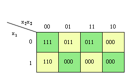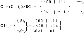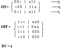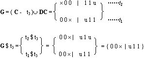 已知: t1= 0 0 ×| u 1 1 是质立方体,欲知t1是否是必要质立方体,其判别条件为式(4-17)。 ![]() t1∩ON = 0 0 ×| u 1 1 因为: t1∩ON 所以t1不是必要质蕴涵项。 此外,已知t3是质立方体,欲判别t3是否是必要质立方体,作: ![]() t3∩ON = 0×1| u 1 1 因为: t3∩ON 所以t3是必要质蕴涵项。