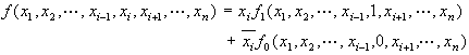 | ·G算法 G算法以M(γ)最大为目标。在覆盖C中立方体之间求一公因子γ。 (1) 覆盖C中每一立方体的初始高度h都为1,标明其高度h和优值M。 (2) 令 γ= XX…X…X M(γ) = O (3) 从覆盖C中选一优值M最大的元素c。 (4) c和覆盖C中其它任一元素作m积,并标明其高度h和优值M。 (5) 从诸m积中选出一优值最大者 。 (6) 用β代替覆盖C中由m积形成 的两个元素。 (7) 若 M(γ) < M (β) 则令 M(γ) = M (β) γ= β (8)若覆盖C被简化到只有一个立方体时则停止,否则转入(3)。 由以上步骤求出的公因子 其优值最大或接近最大。下一步应当把C分解为两个子集S和N,并进一步提取公因子。这一过程在H算法中已有说明,不再赘述。 本节介绍了几种提取公因子的算法,可以解决扇入约束问题,并且把二级逻辑转化为多级逻辑,但它还不能说是一个优秀的算法。 把布尔函数转化为多级逻辑电路的方法还有其他方法,比较有代表性的有: ·先农展开定理(Shannon's Expansion Theorem): |