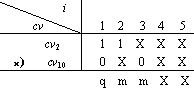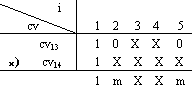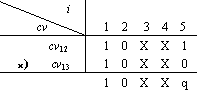 例4 请判断表5.1中操作12与操作13是否是同一层次上的互斥操作,其中 cv12 = {1, 0, X, X, 1 } cv13 = { 1, 0, X, X, 0 }。