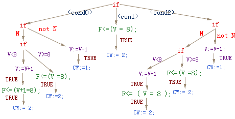 化简后的执行树不含相关性, 化简后的执行树如图6.17所示。由于已经将可化简的变量进行了替换,因此各个表达式与赋值语句之间已不存在相关性。现在对任何一个表达式中出现的变量求值时,就等于本程序段开始时该变量的值,也就是上一个模拟周期结束时的值。这样,就符合了我们建立有限状态机模型时各个转换函数并发赋值的要求。
