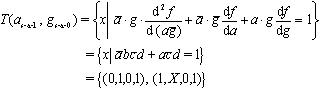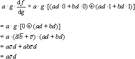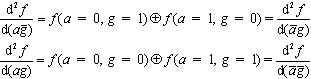 (3)正常情况下的值a = 1, g = 1。这时,a的值与故障值相同,而g的值与其故障值不同。先不考虑a,只要考虑关于g的一阶布尔差分,即其测试向量应满足