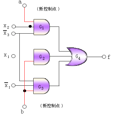 不难看出, 是一个冗余项,即G1是冗余部分电路。这一点的故障不可测。增加控制点a,