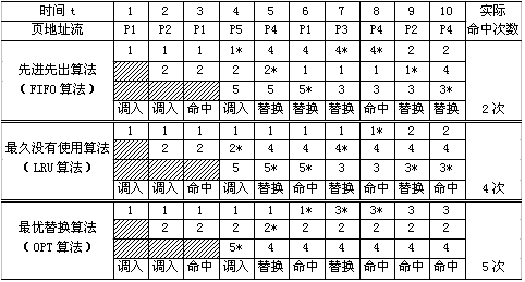 一般来说,对于一个循环程序,当分配给它的页面数小于程序所需要的页面数数时,有可能发生"颠簸"现象。这时,无论是FIFO算法,还是LRU算法,它们的命中率都明显地低于OPT算法。