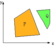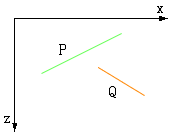 2) 设Zmin最小的多边形为P,它在待排序的多边形中暂时成为优先级最小的多边形,其他的多边形称为Q,进一步确定P和Q的遮挡关系。